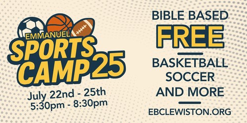 Register today and give your child a week they won’t forget! Doors open at 5:00pm Sports Camp will be held at Beacon Christian School, 615 Stewart Ave in Lewiston.
